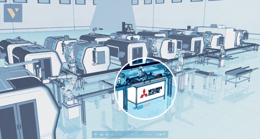 Na pierwszy rzut oka nasze stoisko może wydawać się skromniejsze niż zazwyczaj. Są to tylko pozory, gdyż większość naszych technologii znajduje się tym razem w przestrzeni cyfrowej. Nasza główna aplikacja demo (widoczna na zdjęciu poniżej), oraz postument z nowym robotem serii FR komunikują się z całą pokaźną linią produkcyjną, którą tym razem umieściliśmy w świecie cyfrowym. Jak mogą Państwo zauważyć na naszym stoisku, fizyczne urządzenia pracują wspólnie z całą gamą ciągów produkcyjnych w symulacji 3D – pokazuje to, że pewna granica pomiędzy tym co namacalne, a tym co modelowane, została przełamana. Nasze stanowiska demo współpracują z oprogramowaniem symulacyjnym tworząc fizyczno-wirtualną przestrzeń produkcji. A to wszystko dzieje się z wykorzystaniem protokołu OPC UA, który zgodnie z przewidywaniami trendu Industry 4.0 stanie się kiedyś wiodącym protokołem komunikacji w przemyśle. My już go stosujemy – jak widać nie tylko w komunikacji pomiędzy maszynami, ale również by połączyć świat wirtualny z rzeczywistym.